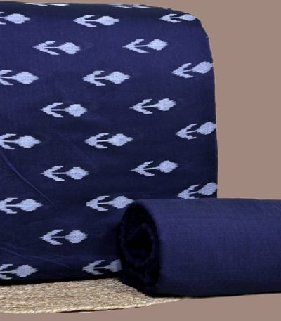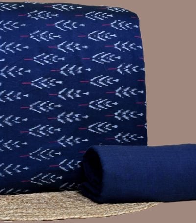 Blue – 2pc HandCrafted Ikkat Top and Handloom Soft Cotton Bottom Fabric Set