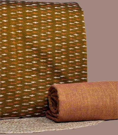 Brown – 2pc HandCrafted Ikkat Top and Handloom Soft Cotton Bottom Fabric Set