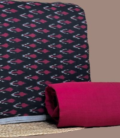 Black – 2pc HandCrafted Ikkat Top and Handloom Soft Cotton Bottom Fabric Set