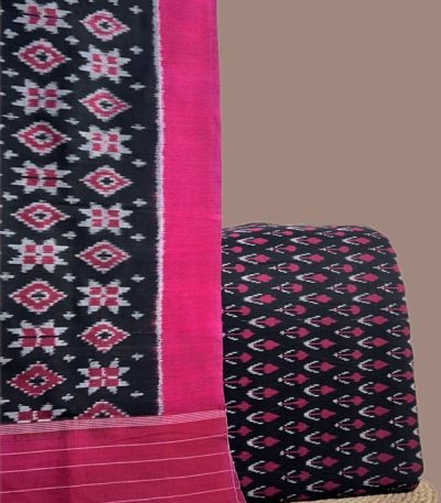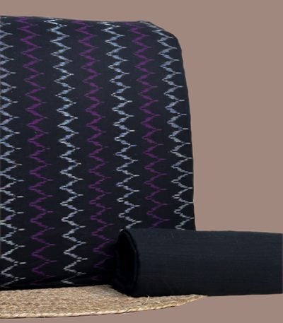 Black – 2pc Ikkat Cotton Dupatta and Handloom Soft Ikkat Cotton Top Fabric Set