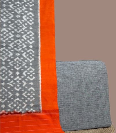 Gray – 2pc Ikkat Cotton Dupatta and Handloom Soft Cotton Top Fabric Set