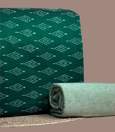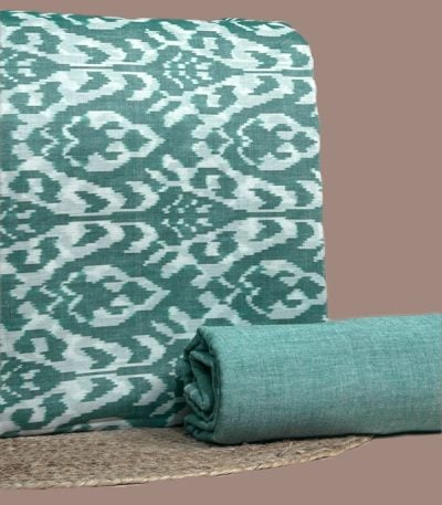 Green – 2pc HandCrafted Ikkat Top and Handloom Soft Cotton Bottom Fabric Set