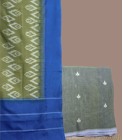 Green – 2pc Ikkat Cotton Dupatta and Handloom Woven Motif Cotton Top Fabric Set