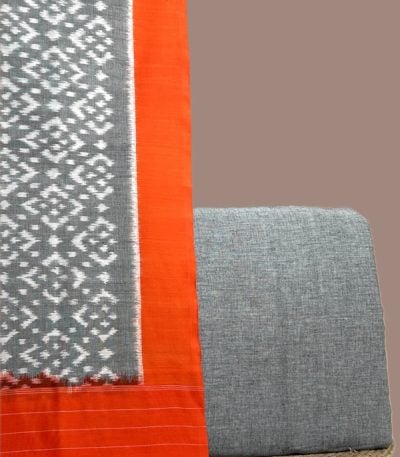 Gray – 2pc Ikkat Cotton Dupatta and Handloom Soft Cotton Top Fabric Set