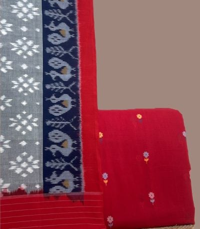Red – 2pc Ikkat Cotton Dupatta and Handloom Soft Ikkat Cotton Top Fabric Set
