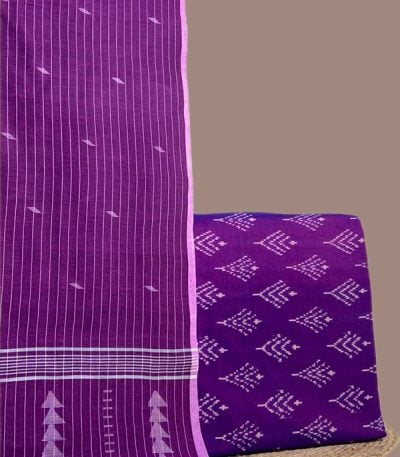 Purple – 2pc Handloom Cotton Dupatta and Handloom Ikkat Top Fabric Set