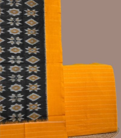 Black – 2pc Ikkat Cotton Dupatta and Handloom Soft Ikkat Cotton Top Fabric Set