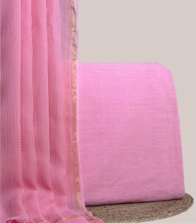 Pink – 2pc Kota Doria Dupatta and Mangalgiri Zari Border Handwoven Pure Cotton Set