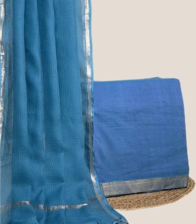 Blue – 2pc Kota Doria Dupatta and Mangalgiri Zari Border Handwoven Pure Cotton Set