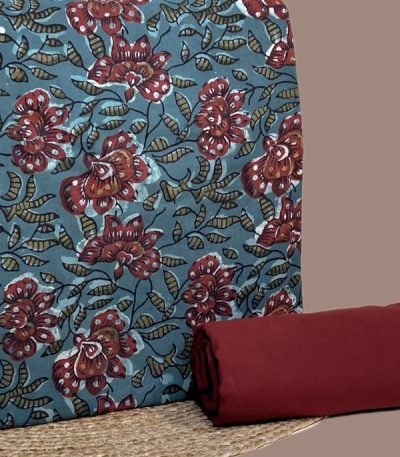 2pc Pure Soft Cotton Blockprinted Top and Bottom Fabric Set