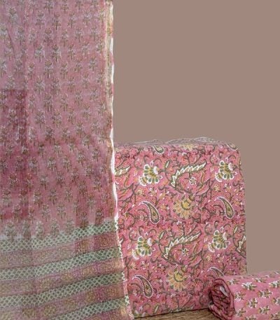 3Pc Blockprinted Soft Cotton Dupatta with Pure Soft Cotton Top & Bottom Fabric Set
