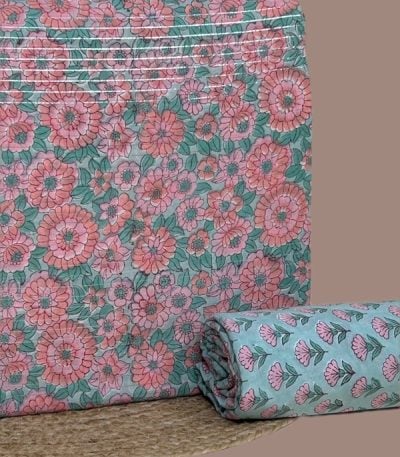 2pc Pure Soft Cotton Blockprinted Top and Bottom Fabric Set
