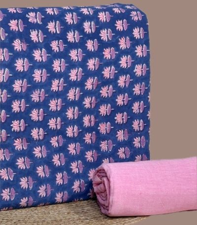 Blue – 2pc Pure Soft Cotton Blockprinted Top and Bottom Fabric Set