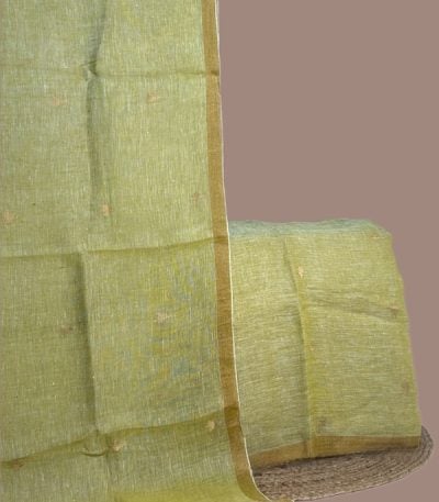 Green – 2pc Premium Linen Handloom Dupatta and Pure Handloom Linen Top Fabric Set