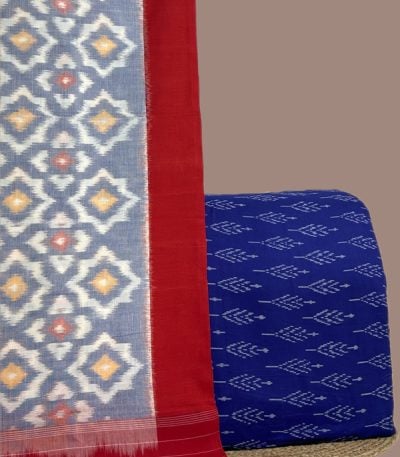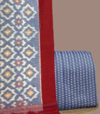 Blue – 2pc Ikkat Cotton Dupatta and Handloom Soft Ikkat Cotton Top Fabric Set