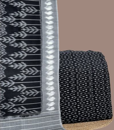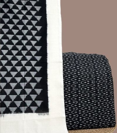 Black – 2pc Ikkat Cotton Dupatta and Handloom Soft Ikkat Cotton Top Fabric Set