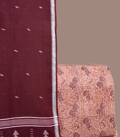 2.5mtr Each – Handloom Cotton Dupatta with Handloom Ikkat Soft Cotton Top Fabric Set