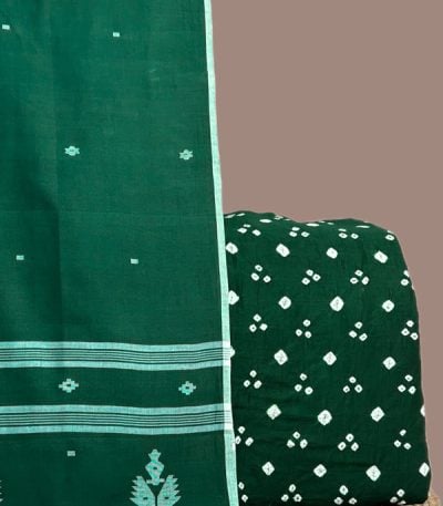 Green – 2pc Handloom Cotton Dupatta and Bandhani Cotton Top Fabric Set