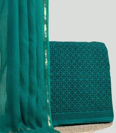 Green – 2pc Kota Doria Dupatta and Bagh Blockprint Top Cotton Fabric Set
