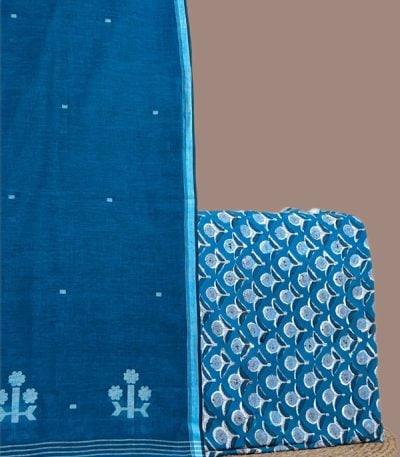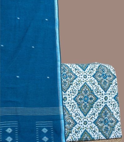 Blue – 2pc Handloom Cotton Dupatta and Handloom Soft Cotton Top Fabric Set