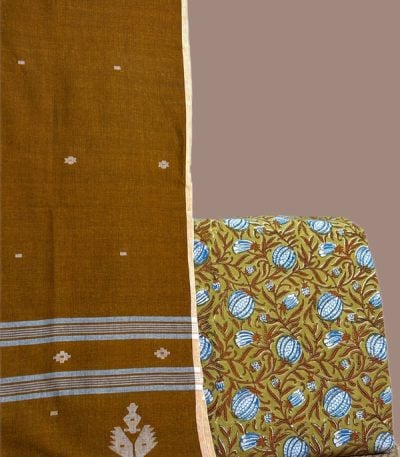 Brown – 2pc Handloom Cotton Dupatta and Handloom Soft Cotton Top Fabric Set