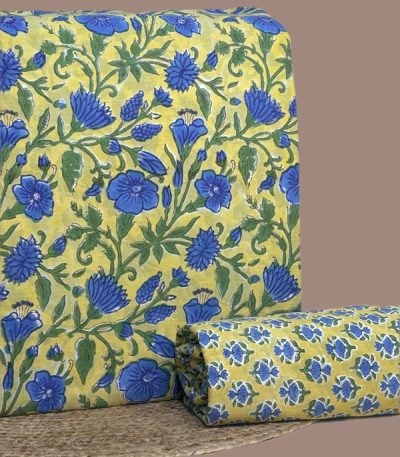Yellow – 2pc Pure Soft Cotton Blockprinted Top and Bottom Fabric Set
