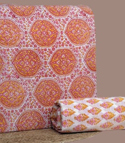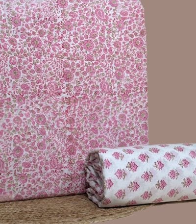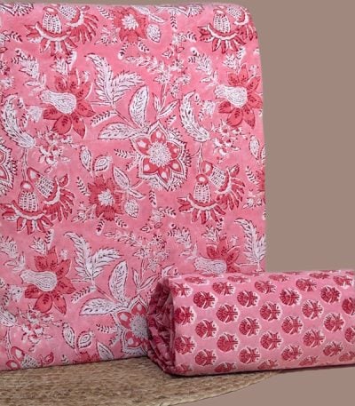 Pink – 2pc Pure Soft Cotton Blockprinted Top and Bottom Fabric Set