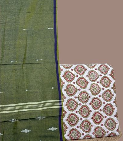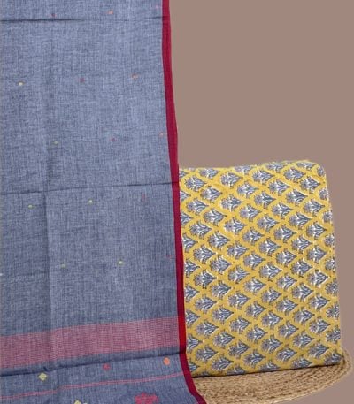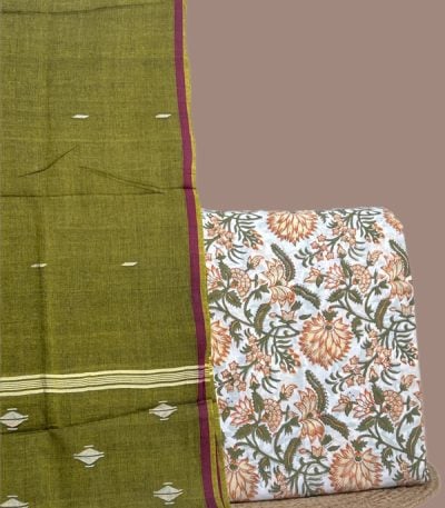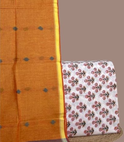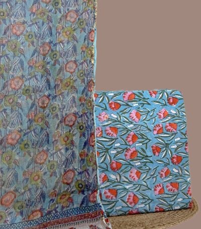 2.50mtr Each– Handloom Cotton Dupatta with HandBlock Printed Pure Soft Cotton Top Fabric Set