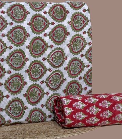 2.50mtr Each– HandBlock Printed Pure Soft Cotton Top Bottom Fabric Set