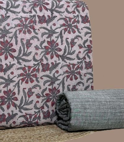 2pc Pure Soft Cotton Blockprinted Top and Bottom Fabric Set