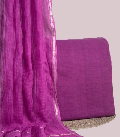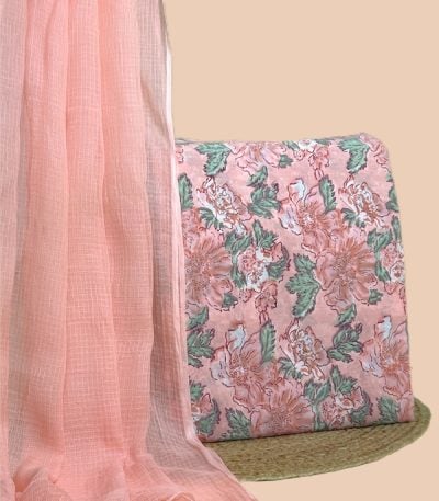 Pink – 2pc Kota Doria Dupatta and Pure Soft Cotton Blockprint Top Fabric Set