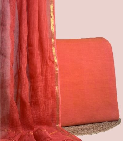 Orange – 2pc Kota Doria Dupatta and Mangalgiri Handwoven Pure Cotton Set