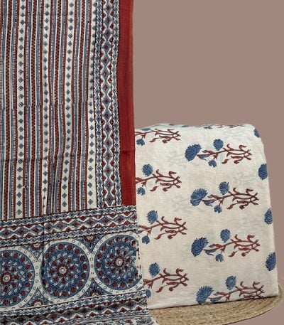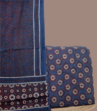 Blue – 2pc Ajrakh HandCrafted Cotton Dupatta and Top Cotton Fabric Set