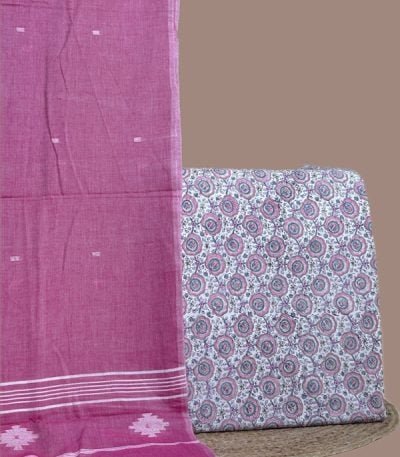 Pink – 2pc Handloom Cotton Dupatta and Pure Soft Cotton Top Set