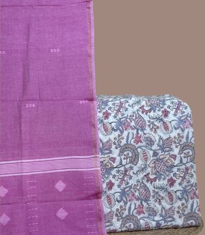 Purple – 2pc Handloom Cotton Dupatta and Pure Soft Cotton Top Set