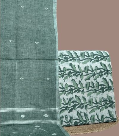 Green – 2pc Kota Doria Dupatta and Pure Soft Cotton Blockprint Top Fabric Set