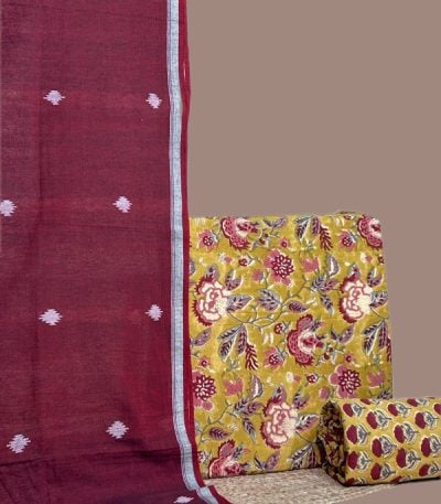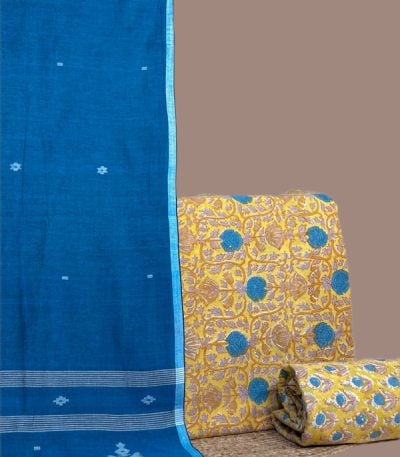 Yellow – 3pc Handloom Soft Cotton Dupatta with Pure Soft Cotton Top & Bottom Set