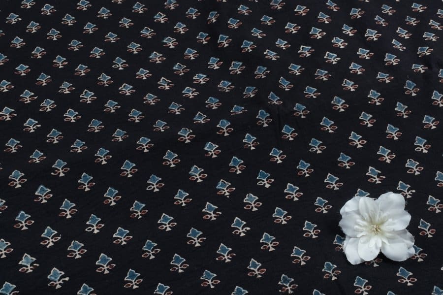 Natural Black Dye Handblock Ajrakh Printed Cotton Fabric
