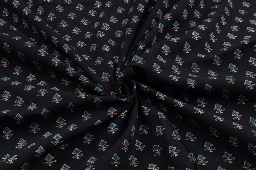 Natural Black Dye Intricate Handblock Ajrakh Printed Cotton Fabric