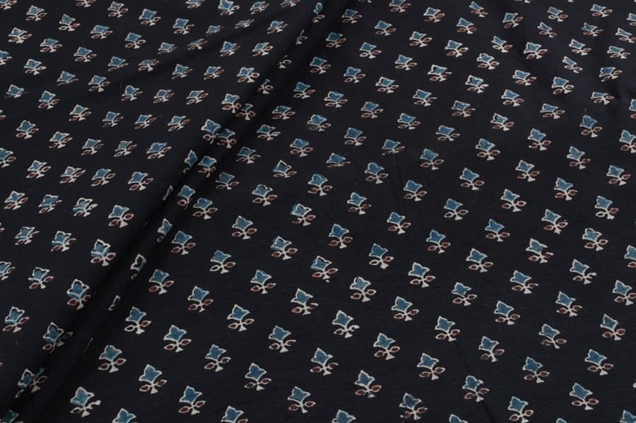 Natural Black Dye Handblock Ajrakh Printed Cotton Fabric