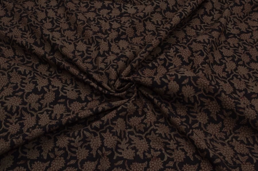 Black Handblock Bagh Printed Cotton Fabric