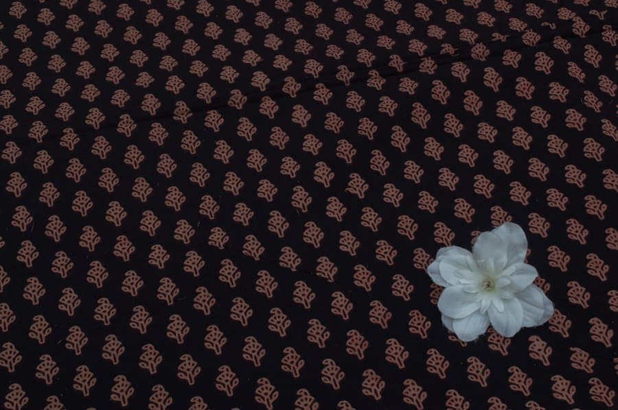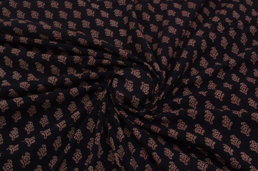 Natural Black Bagru Handblock Printed Cotton Fabric
