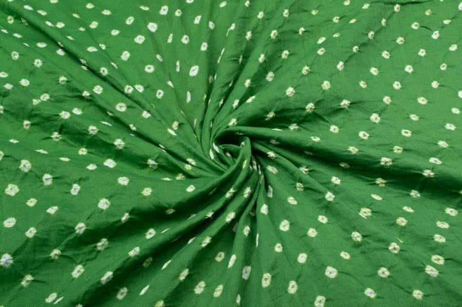 Leaf Green Bandhani Tie Dye 100% Pure Soft Cotton Satin Finish Fabric