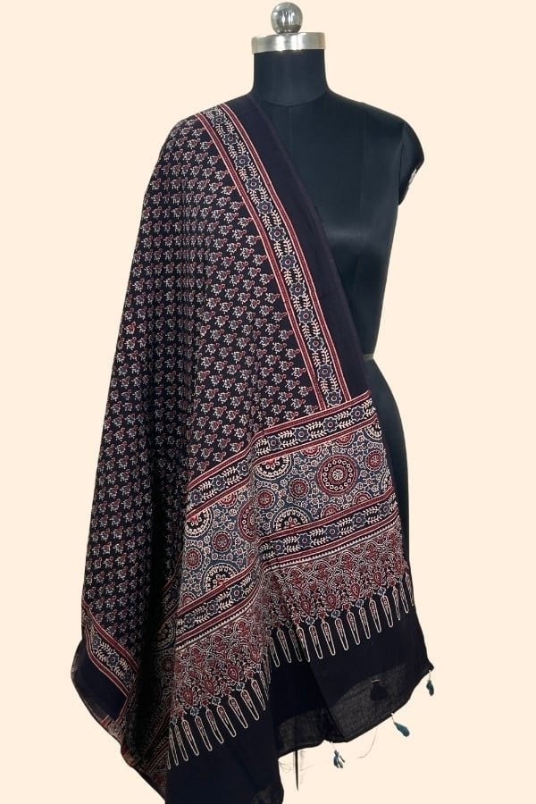 Black – Ajrakh HandCrafted Natural Dye Pure Cotton Dupatta