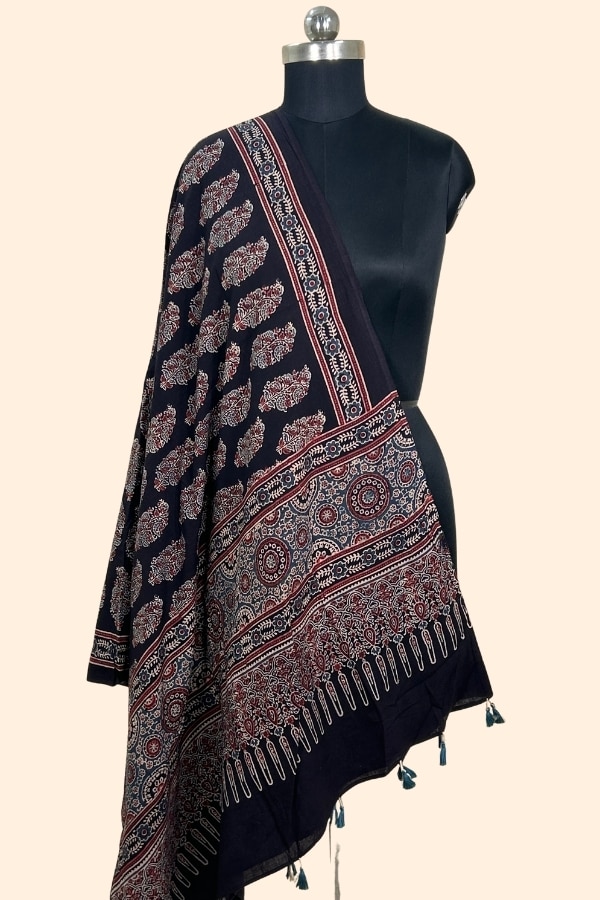 Black – Ajrakh HandCrafted Natural Dye Pure Cotton Dupatta