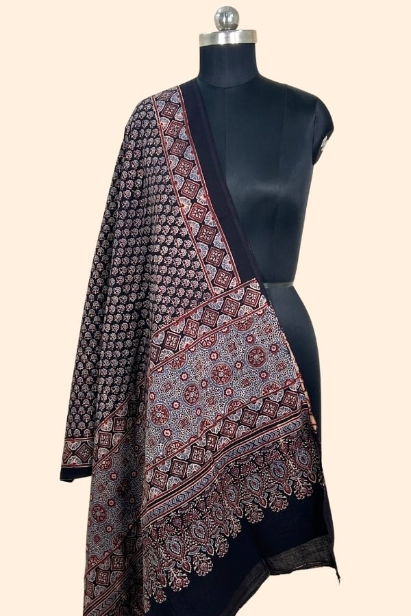 Black – Ajrakh HandCrafted Natural Dye Pure Cotton Dupatta