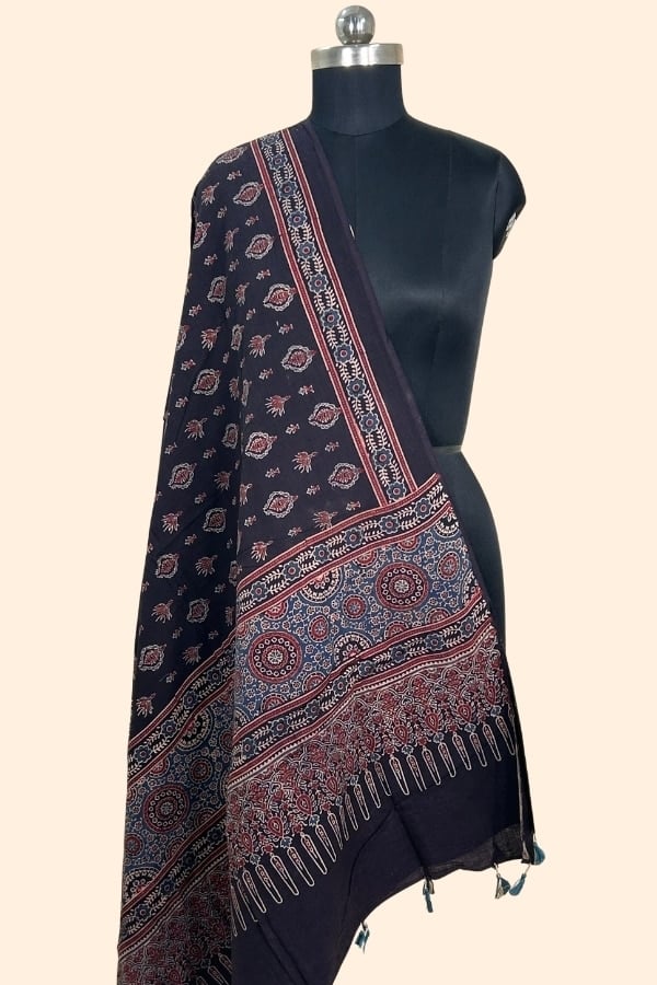 Black – Ajrakh HandCrafted Natural Dye Pure Cotton Dupatta