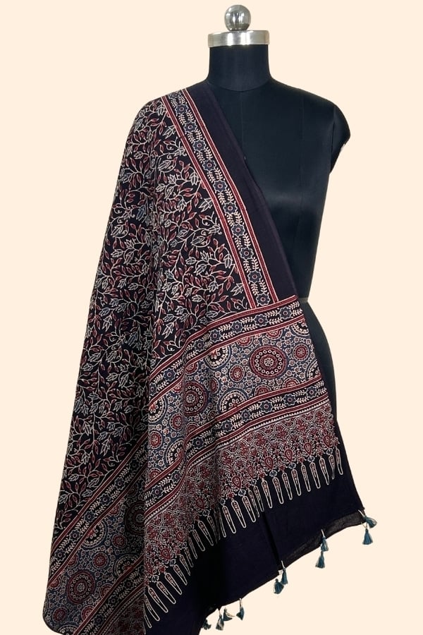Black – Ajrakh HandCrafted Natural Dye Pure Cotton Dupatta