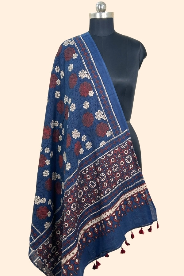 Blue – Ajrakh HandCrafted Natural Dye Pure Cotton Dupatta