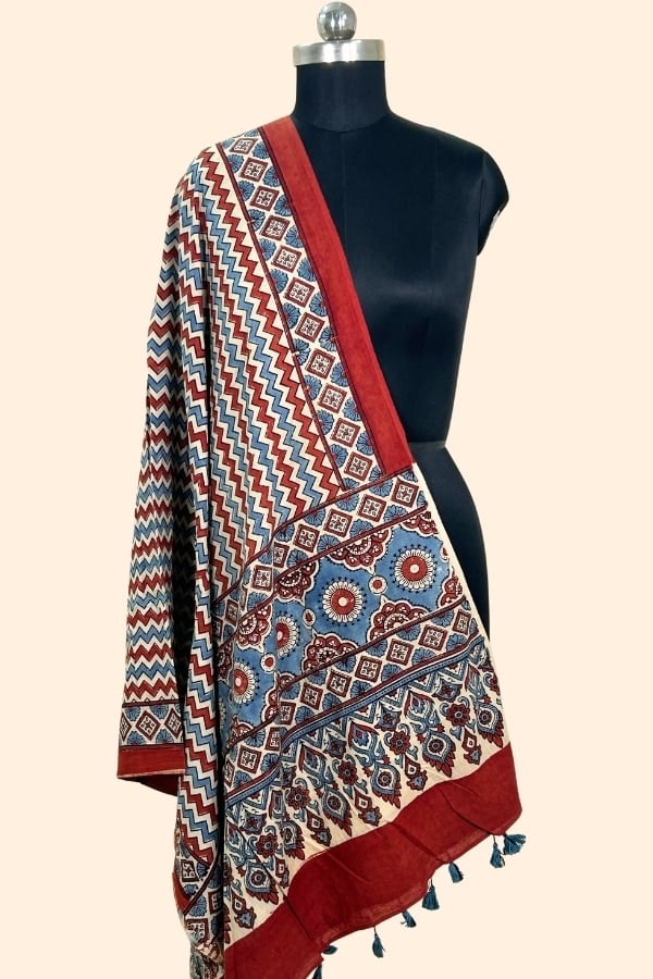 Ajrakh HandCrafted Natural Dye Pure Cotton Dupatta